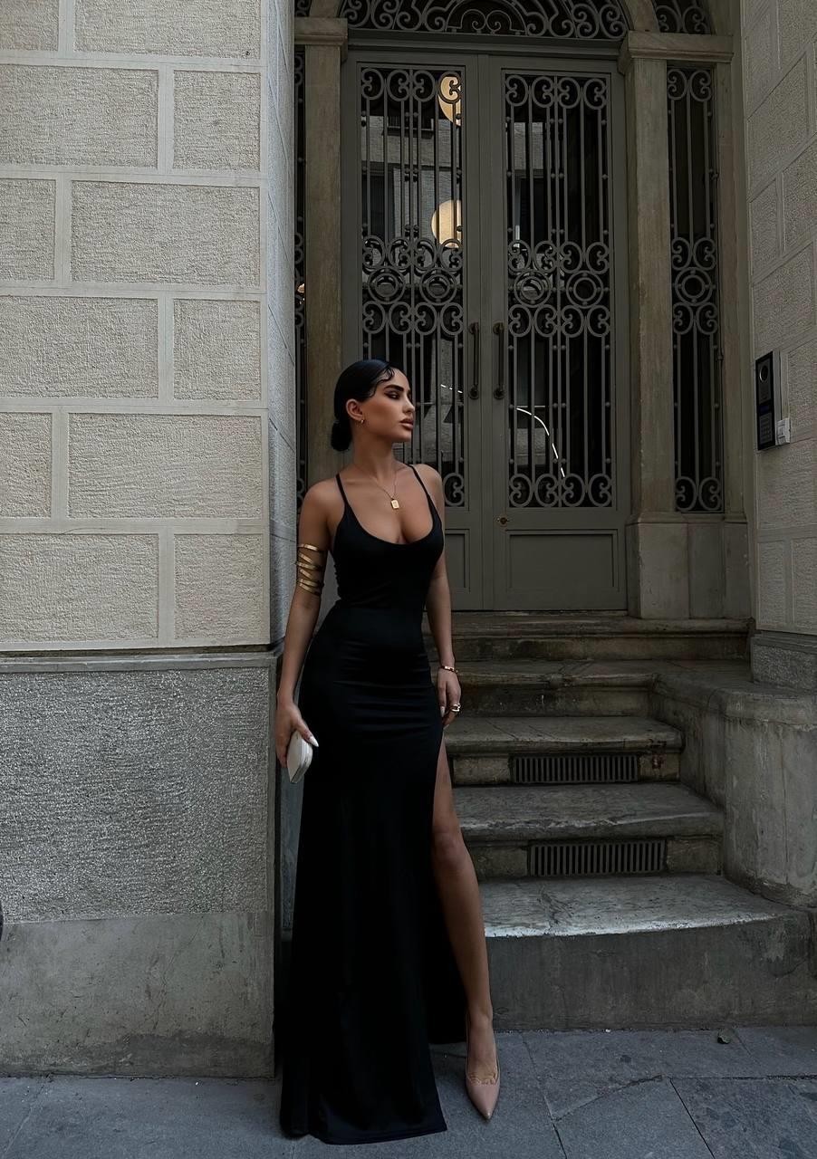 Göğüs zinciri detaylı, maksimum uzunlukta elbise
